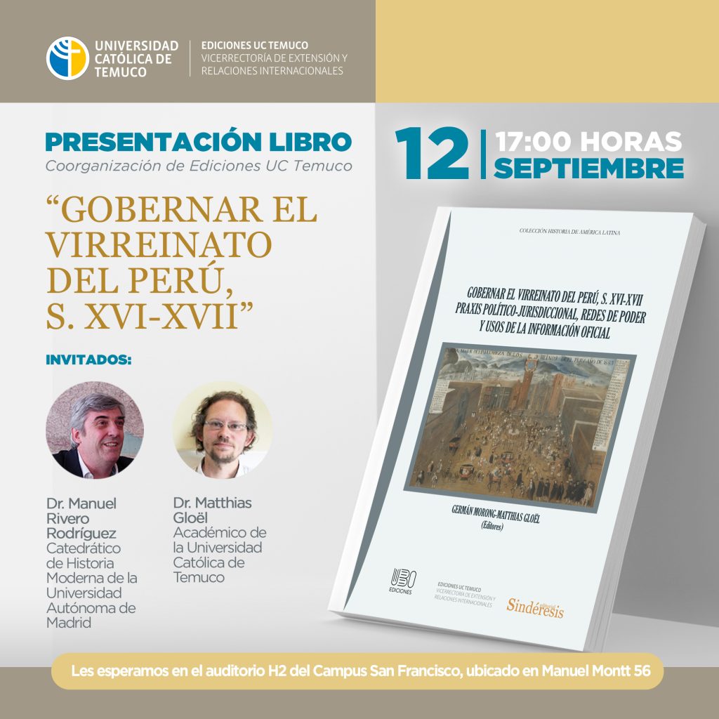 Ediciones UCT en conjunto con el investigador del Departamento de Ciencia Política, Sociología y Administración Pública, Dr. Matthias Gloël, se complacen en presentar el libro Gobernar el Virreinato del Perú, s. XVI-XVII.